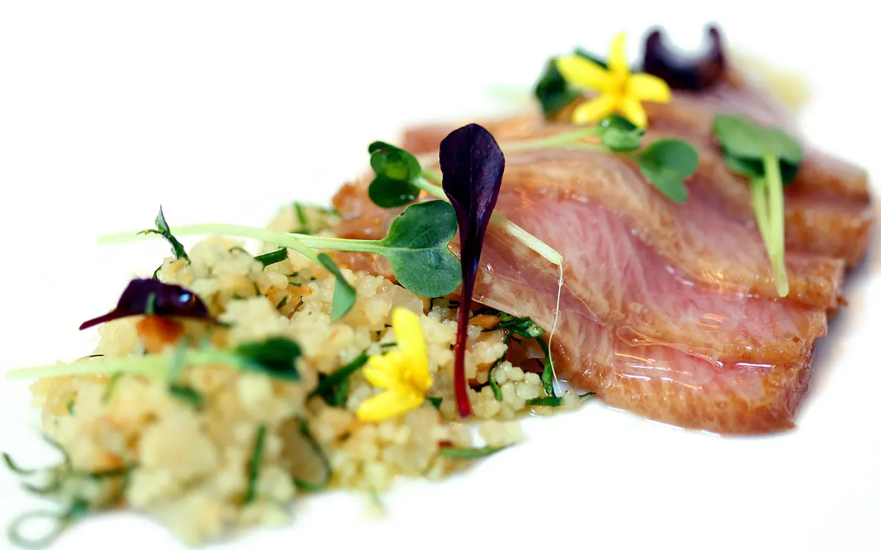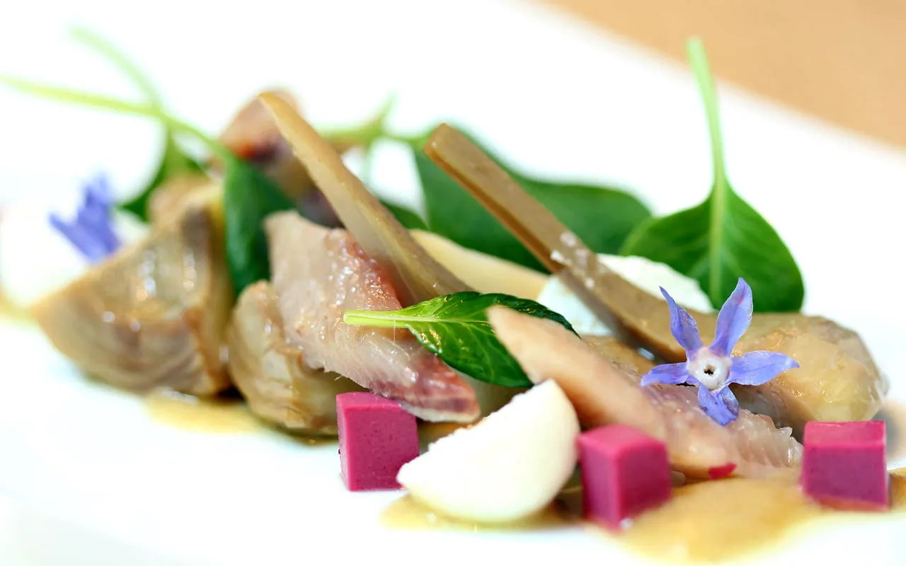 Una cocina de autor que reinterpreta con un alarde de creatividad la gastronomía tradicional catalana, invitándonos a degustar platos tan exquisitos como, el canelón de asado de pato con emulsión de foie, pera y piñones, el cabrito al aste con raíces y bretón asado por unas fresas balsas.